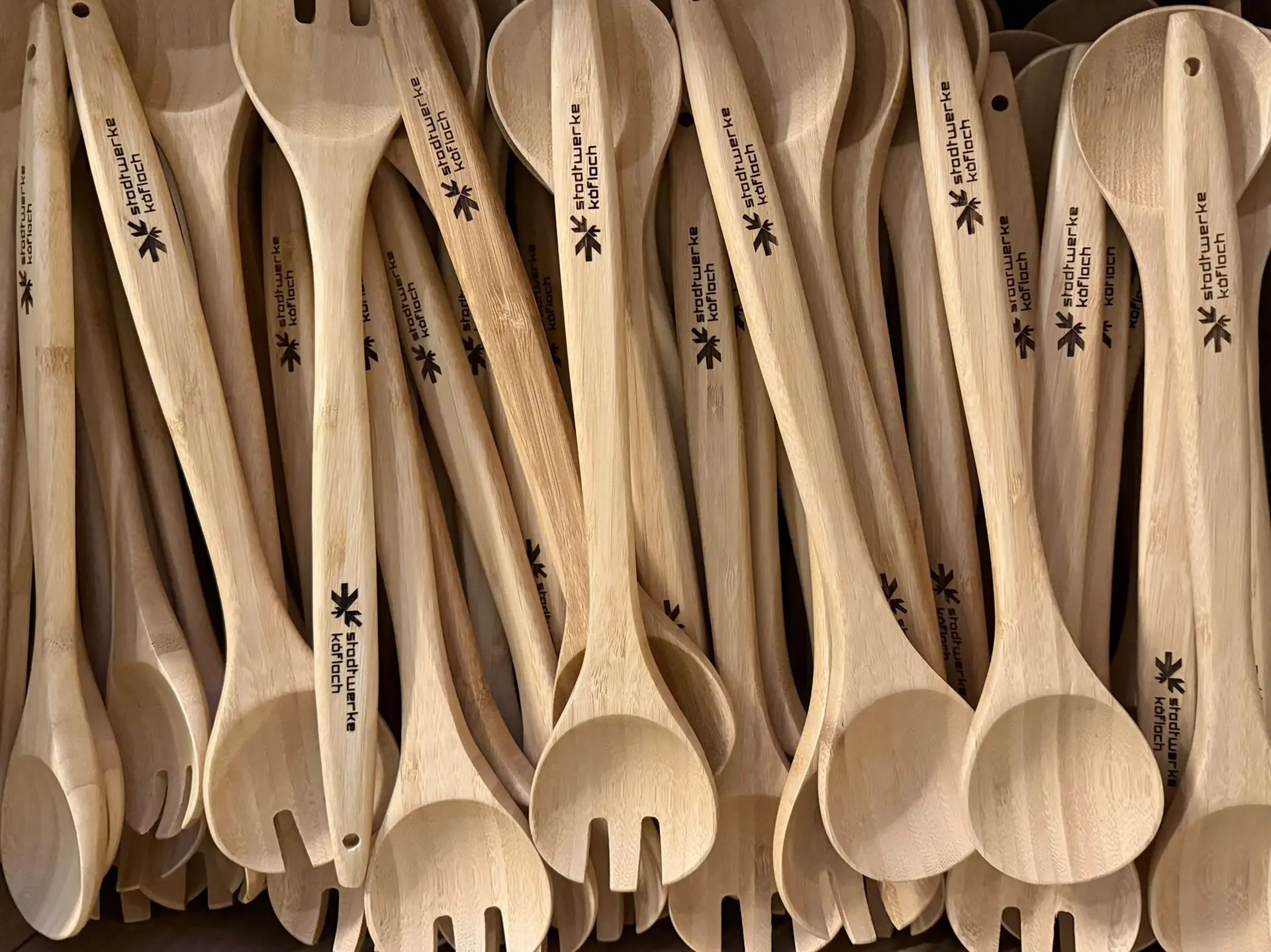 Manche Geschenke verschwinden in der Schublade – andere werden Teil des Alltags. Für die Stadtwerke Köflach durften wir ein Mitarbeitergeschenk umsetzen, das genau das schafft: ein hochwertiges Holz-Salatbesteck-Set (Löffel & Gabel), personalisiert mit Logo.